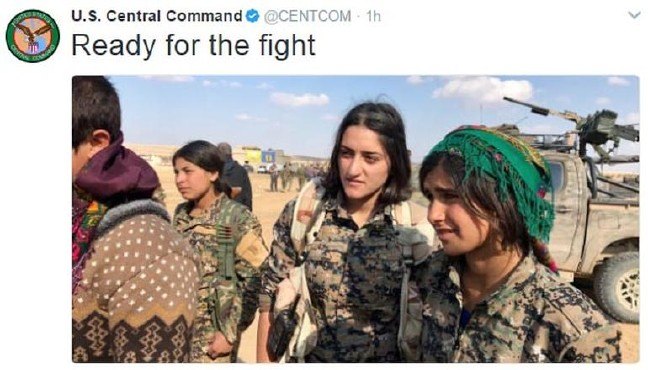 Ortadoğu başta olmak üzere çok sayıda bölge ülkesinde ABD ordusu birliklerine komuta eden CENTCOM’un bu akşam üstü attığı ilk tweet’te, “Kamuoyunun talebi üzerine Suriyeli DEAŞ karşıtı kadın savaşçıların daha fazla fotoğrafını yayınlıyoruz” denildi.