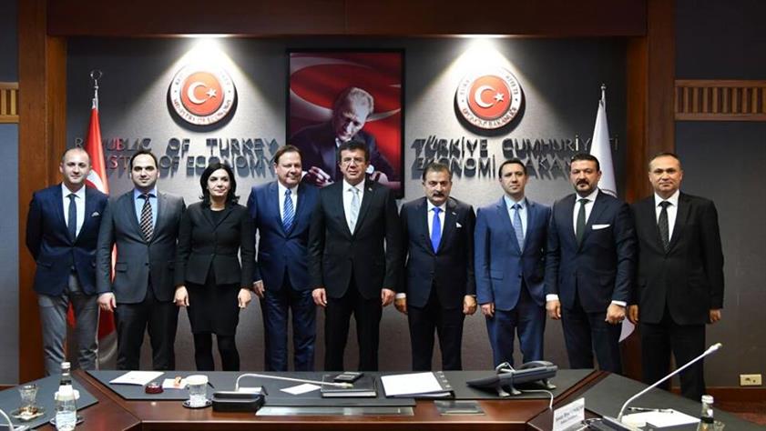 İş aleminin mensupları, Ekonomi Bakanı Nihat Zeybekçi’ye iki ülke arasındaki ticari hacmin arttırılmasına dair görüşler paylaştı.