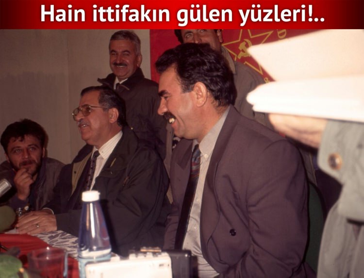 Terör örgütü PKK’nın elebaşı Abdullah Öcalan’ın yer aldığı karede Can Dündar, Ayşe Önal ve Yazgülü Aldoğan’ın da bulunduğu görüldü. Dündar, Aldoğan ve Önal, Öcalan’la sohbet ediyor.