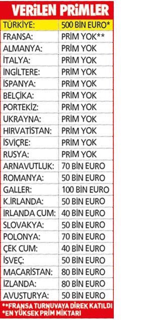 A Milli Takım’da yaşanan prim krizinin ardından EURO 2016’da boy gösteren takımların aldıkları ücretler ortaya çıktı.