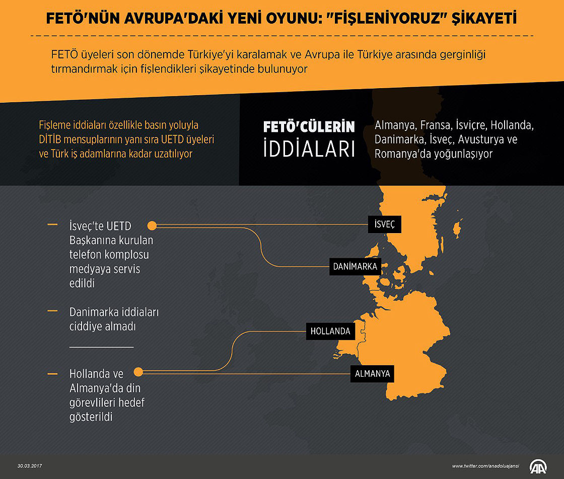 FETÖ üyeleri son dönemde Türkiye’yi karalamak ve Avrupa ile Türkiye arasında gerginliği tırmandırmak için fişlendikleri şikayetinde bulunuyor.