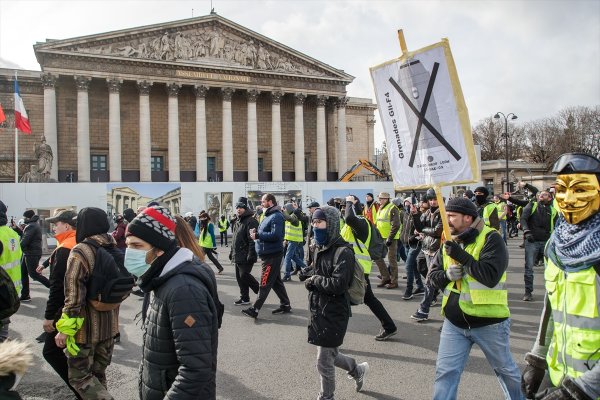 Paris’te Ulusal Meclis önüne yürüyen Sarı Yelekliler ile polis ekipleri arasında çatışma yaşanıyor. Eylemciler arasında 30’lu yaşlarda bir erkek eylemcinin, polisin attığı cisimi uzaklaştırmak isterken elinin bir kısmının koptuğu bildirildi.