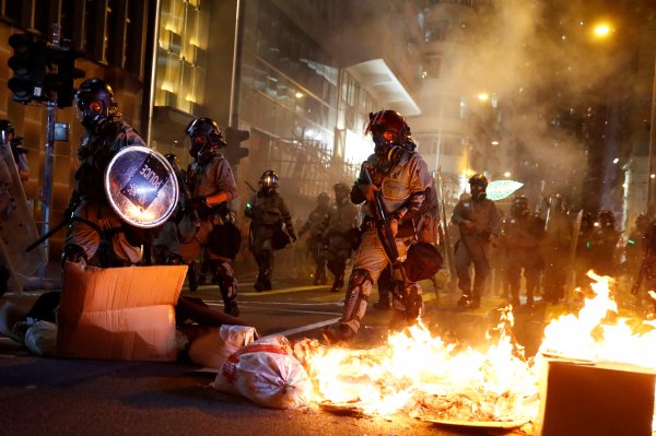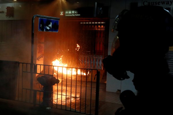 Hong Kong’un farklı noktalarına dağılan göstericiler, bazı metro istasyonlarına ve dükkanlara zarar verdi. Göstericiler, 22. haftasına giren protestolarda ilk defa Çin’in resmi haber ajansı Şinhua’nın ofisine saldırdı. Ajans ofisinin girişini ateşe veren protestocular, girişin camları kırdı ve duvarları boyadı.