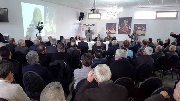 Amsterdam’daki Hollanda Konyalılar Vakfı salonundaki toplantıya, oturma kapasitesinin üzerinde yüzü aşkın davetli geldi.