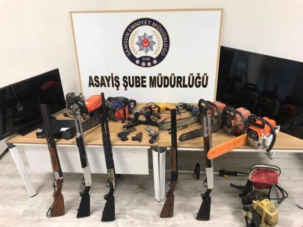 Samsun Emniyet Müdürlüğü Asayiş Şube Müdürlüğü Hırsızlık Bürosu ekiplerinin takibi sonucu yakalanan şüphelilerin, toplam değeri yaklaşık 70 bin lira olan silah, fındık, ceviz, su motoru, dinamo, hızar testere, mazot, kablo, av tüfeği, bisiklet, akü, içki, bakır mutfak gereçleri, LCD TV ve sigara çaldıkları ortaya çıktı.