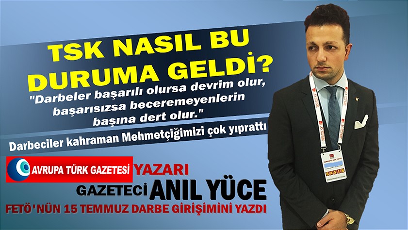 Avrupa Türk Gazeteciler Cemiyeti Genel Sekreteri Anıl Yüce, 15 Temmuz’da Fethullahçı Terör Örgütü’nün (FETÖ) kalkıştığı askeri darbe girişimi sonucu yaptığı katiamlarla beraber toplum yapısında beliren değişikliklere dikkat çekti, FETÖ’nün asker içindeki cuntacı çetesinin eylemleri Türk milletinin gözünde askerlerin ciddi anlamda yıpranmasına neden olduğunu yazdı.