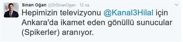 İnternet üzerinden yayın yapan televizyon için Sinan Oğan “gönüllü sunucu” çağrısında bulundu.
