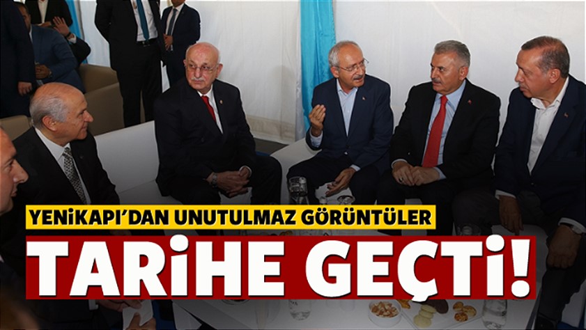 Yenikapı’daki ‘Demokrasi ve Şehitler Mitingi’ne gelen Cumhurbaşkanı Erdoğan, TBMM Başkanı Kahraman, Başbakan Yıldırım, CHP Genel Başkanı Kılıçdaroğlu ve MHP lideri Bahçeli, bir süre baş başa sohbet etti.